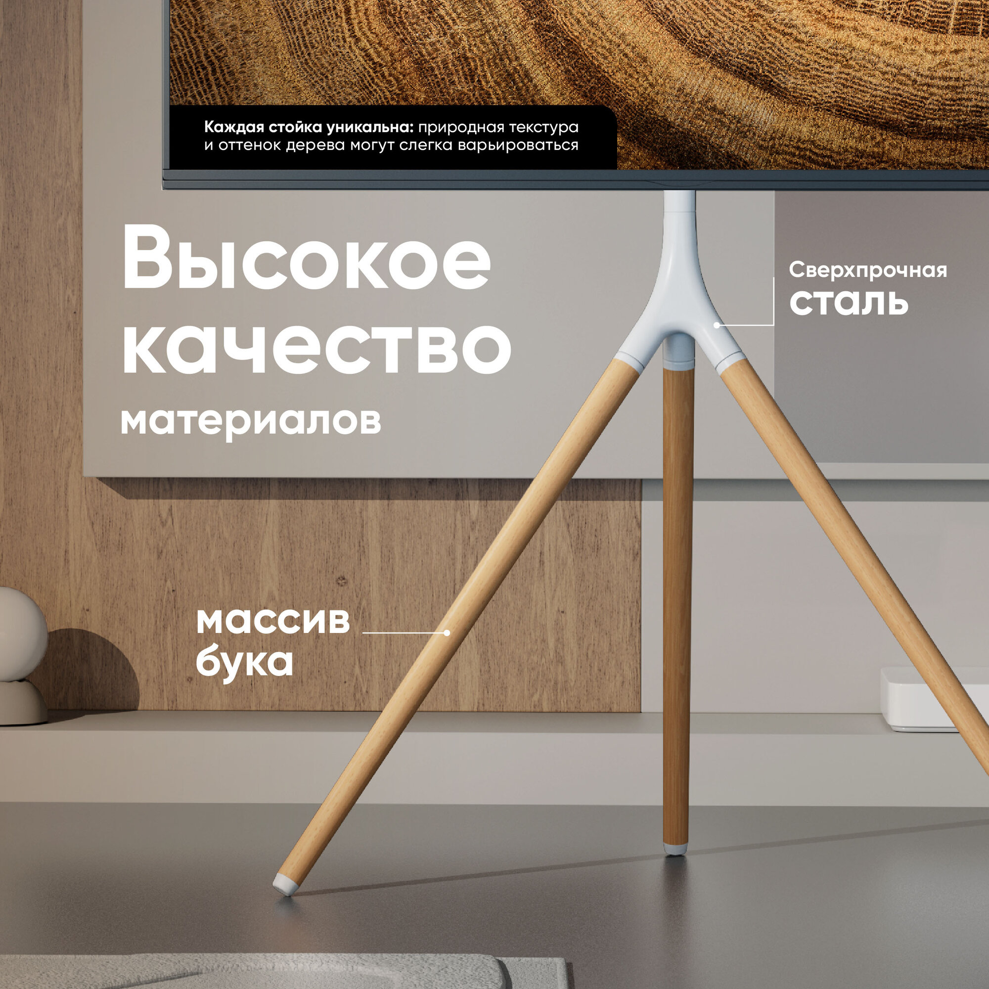 | Отзыв: | Крутая дизайнерская стойка за вои деньги. Очень богатый комплект монтажа, прикрутить любой та сможете, ребята очень постарались с комплектацией всех болтов, шайб и прочих. Выглядит красиво в интерьере и легко. Даже для проводов есть держатели. |