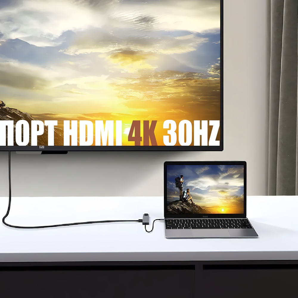 Купить HUB Type C для Macbook / USB разветвитель / HDMI 4K адаптер / USB C + USB 3,0 + SD + TF