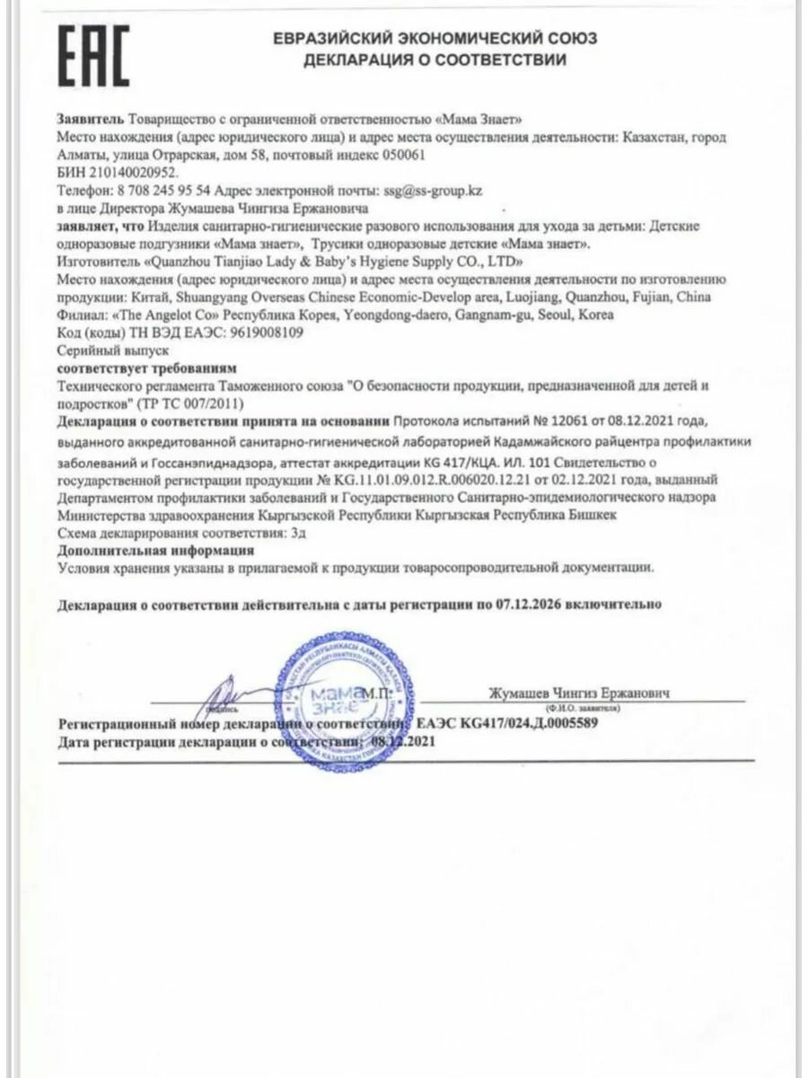 Трусики детские Мама знает, 5 XL, 12-18 кг, 44 шт, дышащие, защита от опрелостей, индикатор заполнения