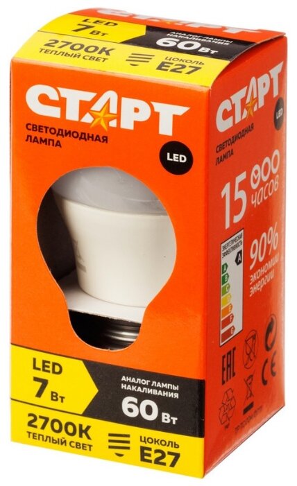 Лампа светодиодная Старт 7W E27 2700k тепл. бел. шар ECO, 2 шт интересное: