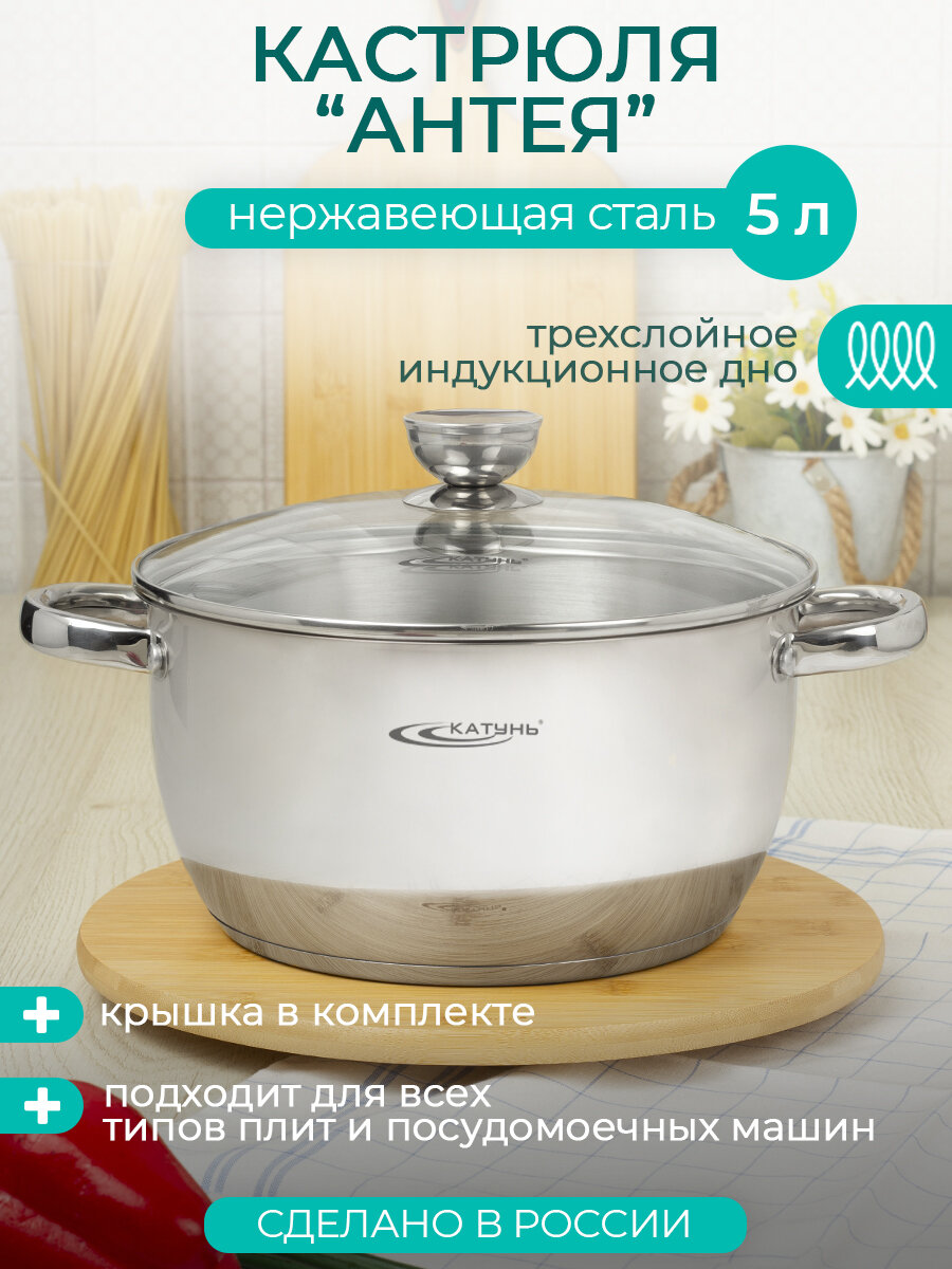 Кастрюля 5 л катунь, антея, KT05-D-24, нерж.сталь, зеркальная полировка
