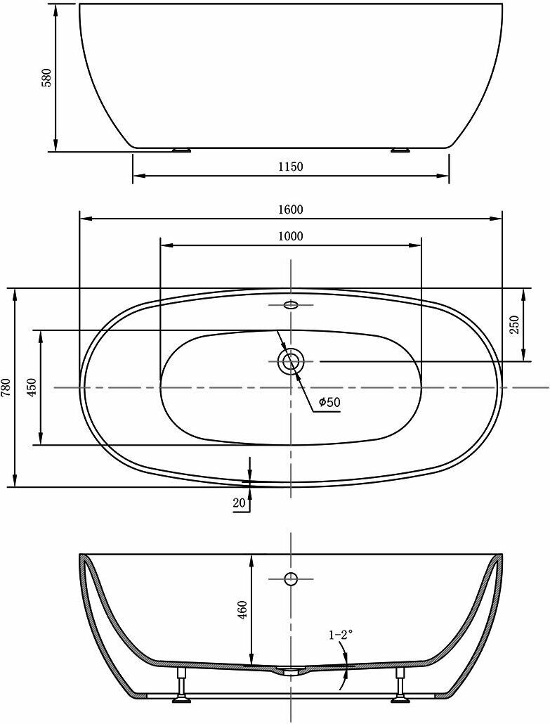 Отдельностоящая ванна Vincea VBT-421-1700MB, 1700x800x580