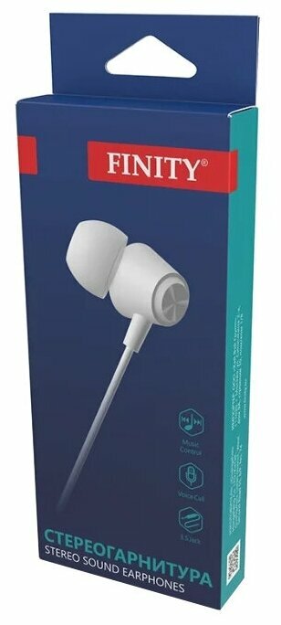 Купить Наушники проводные Finity Pulse Music(SF-006)с микрофоном/Гарнитура с микрофоном/для телефона/для смартфона/для плеера,1.2м, белый