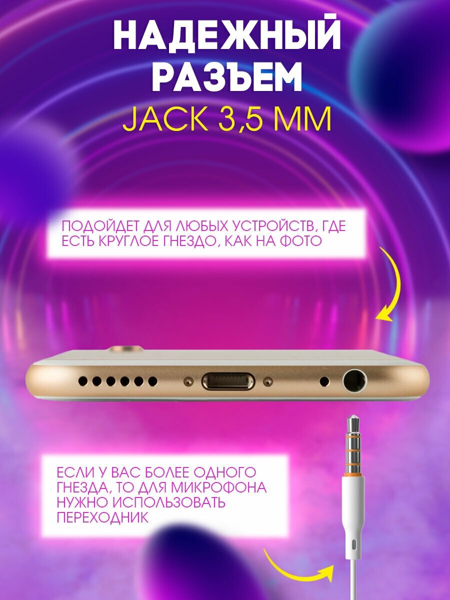 Наушники проводные с микрофоном для телефона, Гарнитура для Айфон iPhone и Андроид, FINITY Pulse Music, микрофон, кнопка ответа, 1.2м, белый