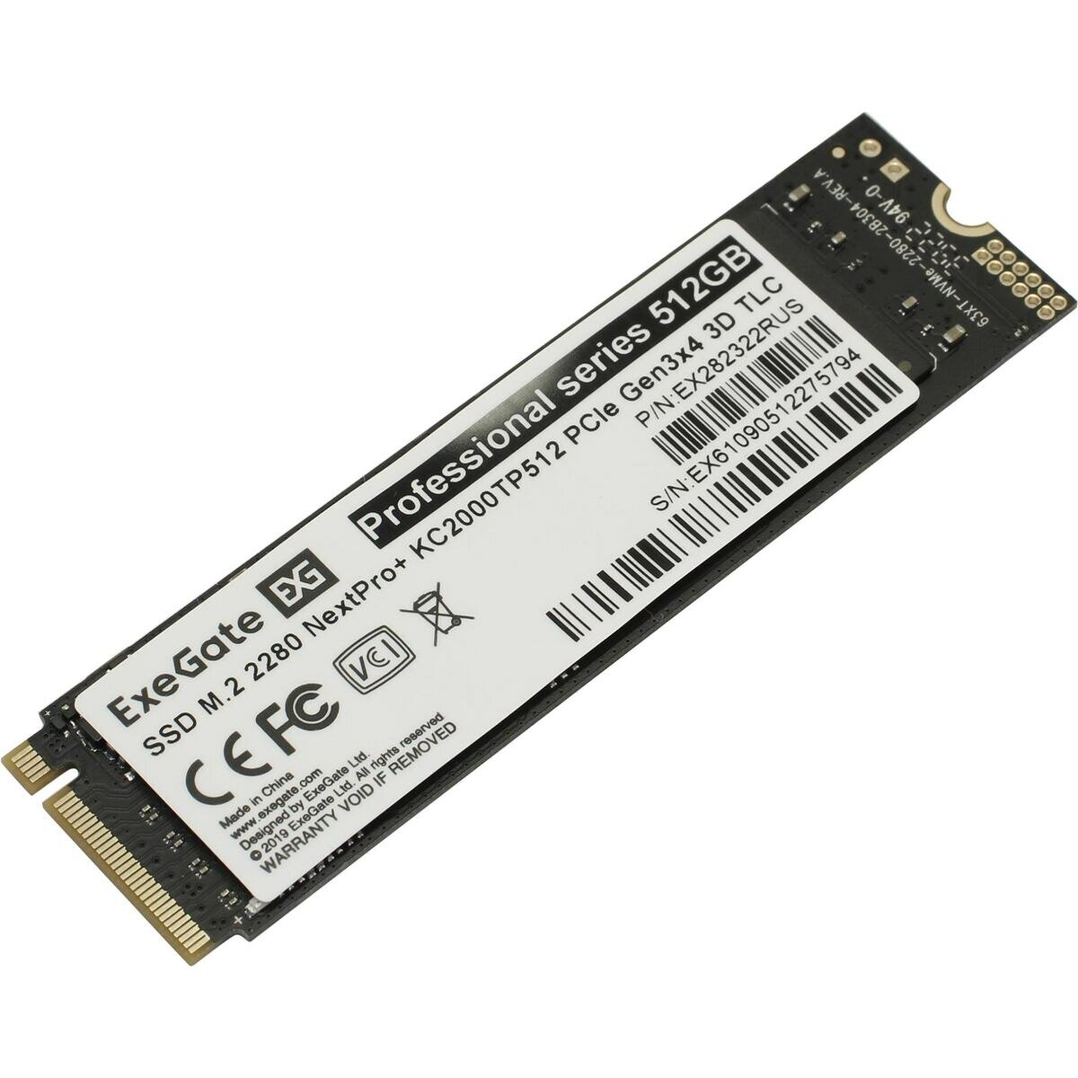 Накопитель SSD ExeGate EX282322RUS NextPro+ KC2000TP512 Gb M.2 2280 3D TLC (PCI-E x4)