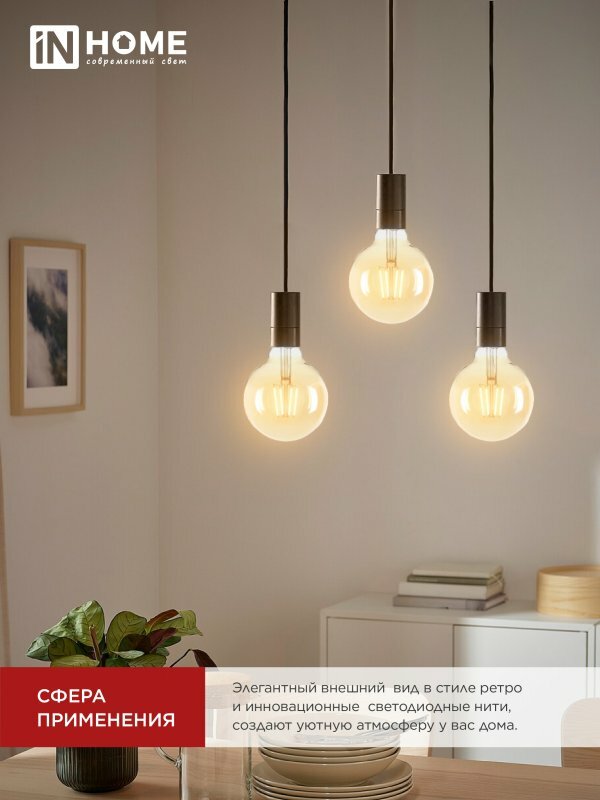 Лампа светодиодная IN HOME LED-GL-125-deco gold (4690612036489), E27, 11 Вт, 3000 К