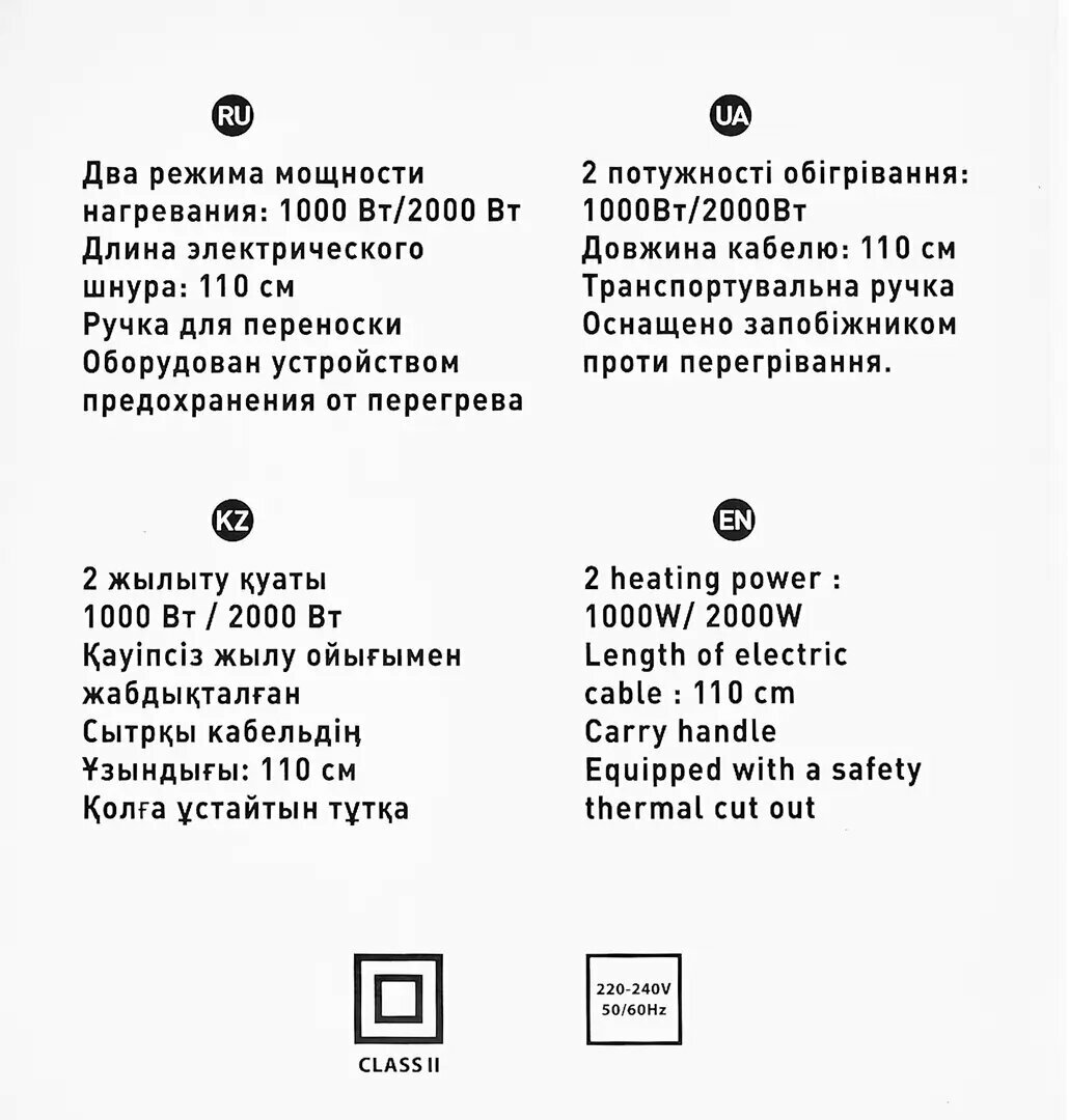 | Мощность обогрева | 2000 Вт |