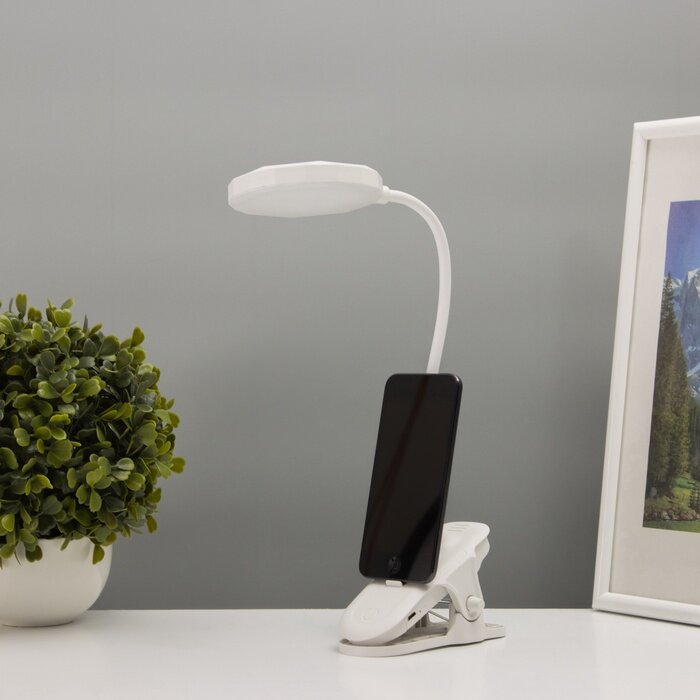 Купить Светильник на прищепке с подставкой под телефон «Грань» 5 Вт LED USB 2700-6500К белый