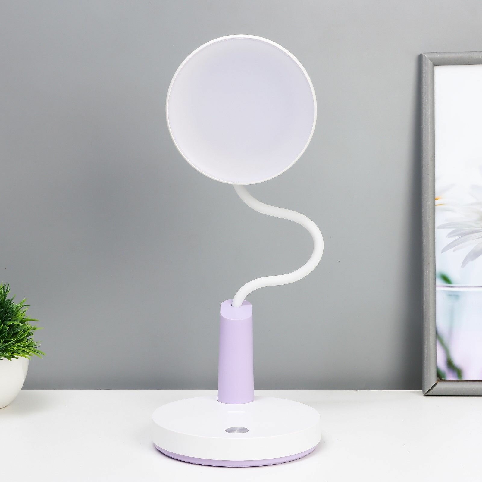 Купить Настольная лампа "Гард" LED, от USB-АКБ 7 Вт сенсор 3000-6000К белый-фиолетовый 13х12х37 см RISALUX