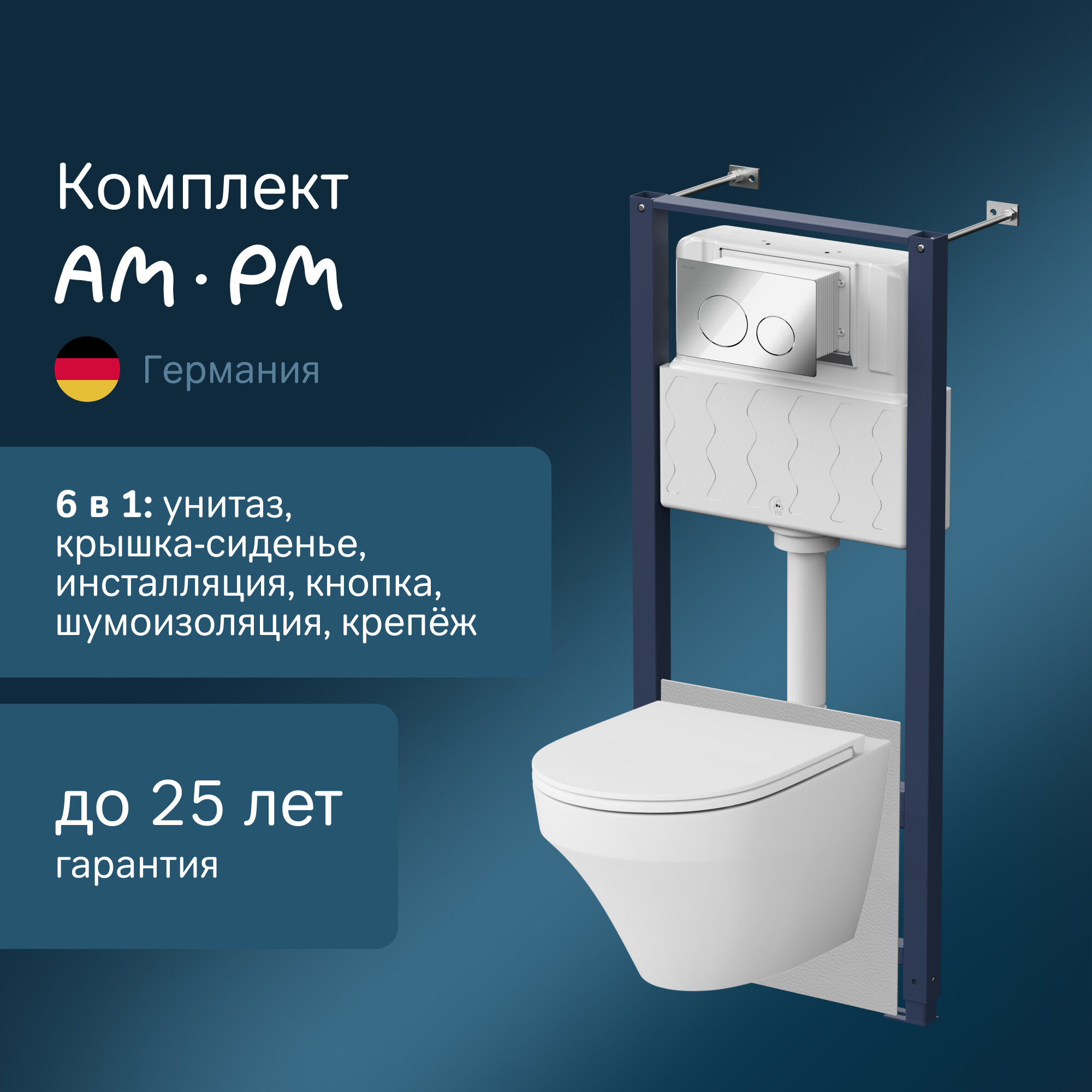Комплект инсталляция с подвесным унитазом Am.Pm Inspire FlashClean IS49001.501700 с сиденьем микролифт и клавишей