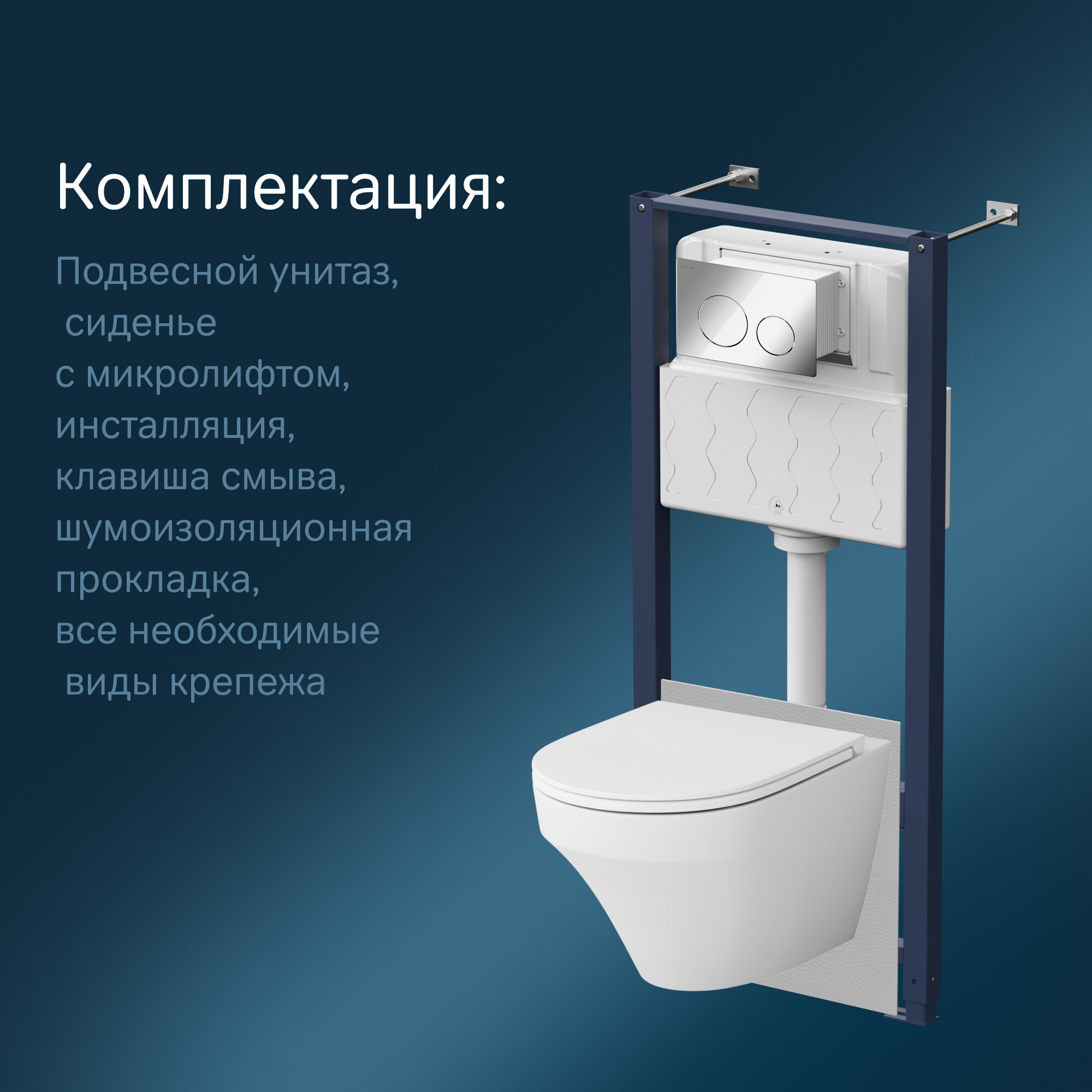 Купить Инсталляция с подвесным унитазом AM.PM Inspire, пневм. кнопка Pro L глянцевый хром, безободковый, шумоизоляция