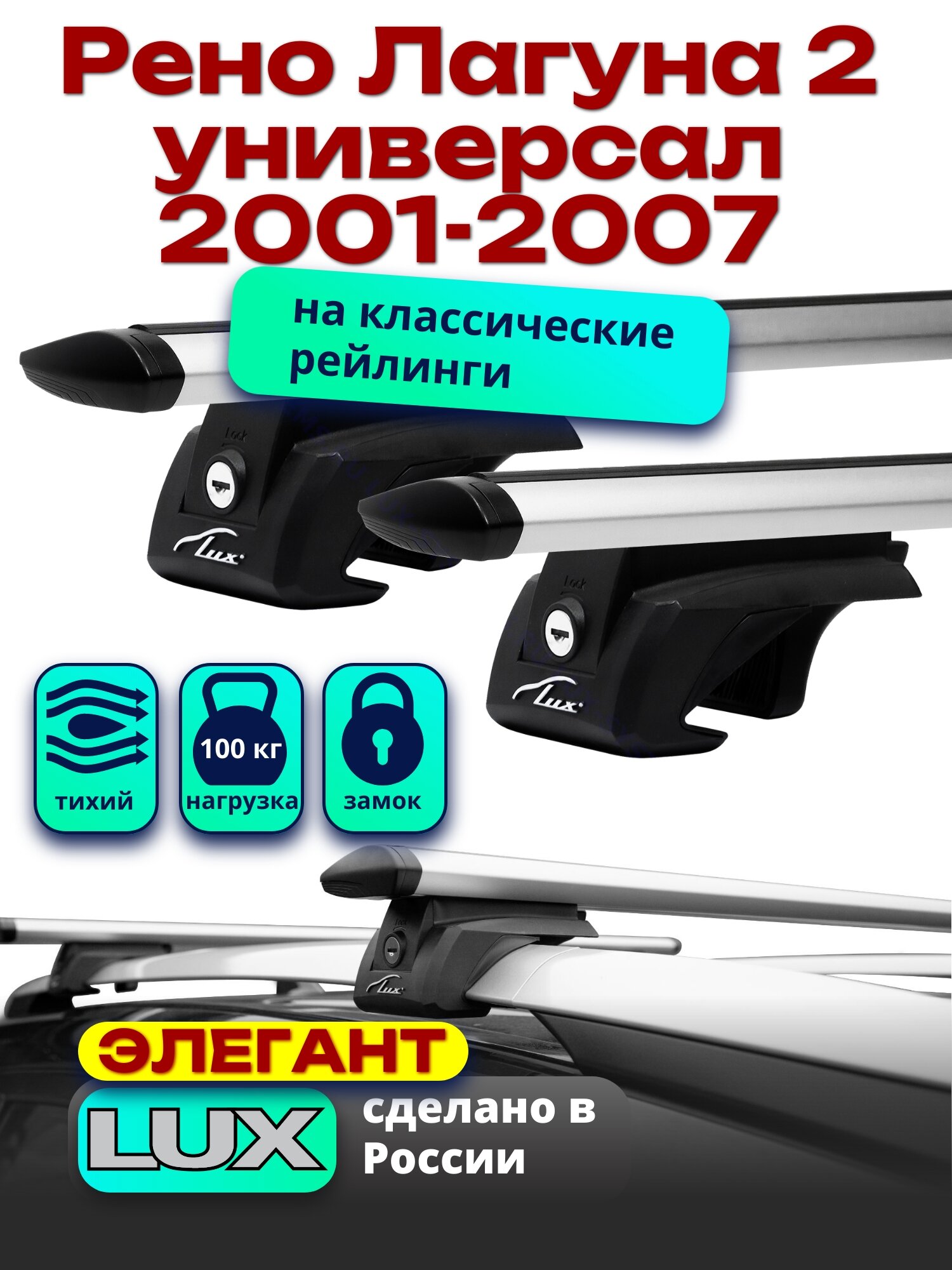 Багажник на крышу LUX классик дуги аэро-классик (53мм) 1,2м на Рено Лагуна 2 универсал с рейлингами 2001-2007, арт:21194-06