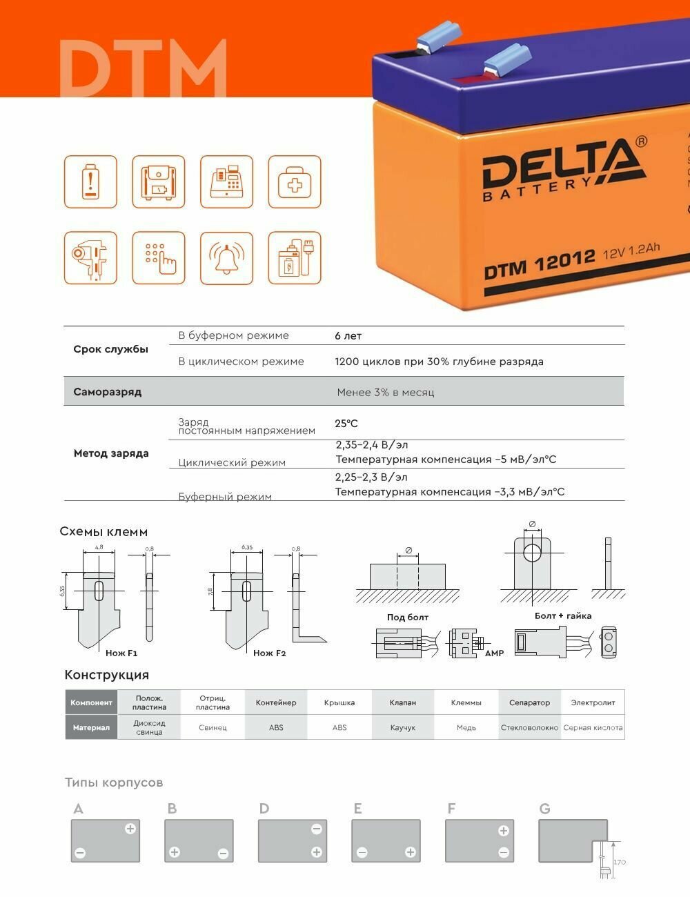 Аккумулятор Delta 6V 7A/h (DTM 607) для ИБП / эхолота / электромобиля