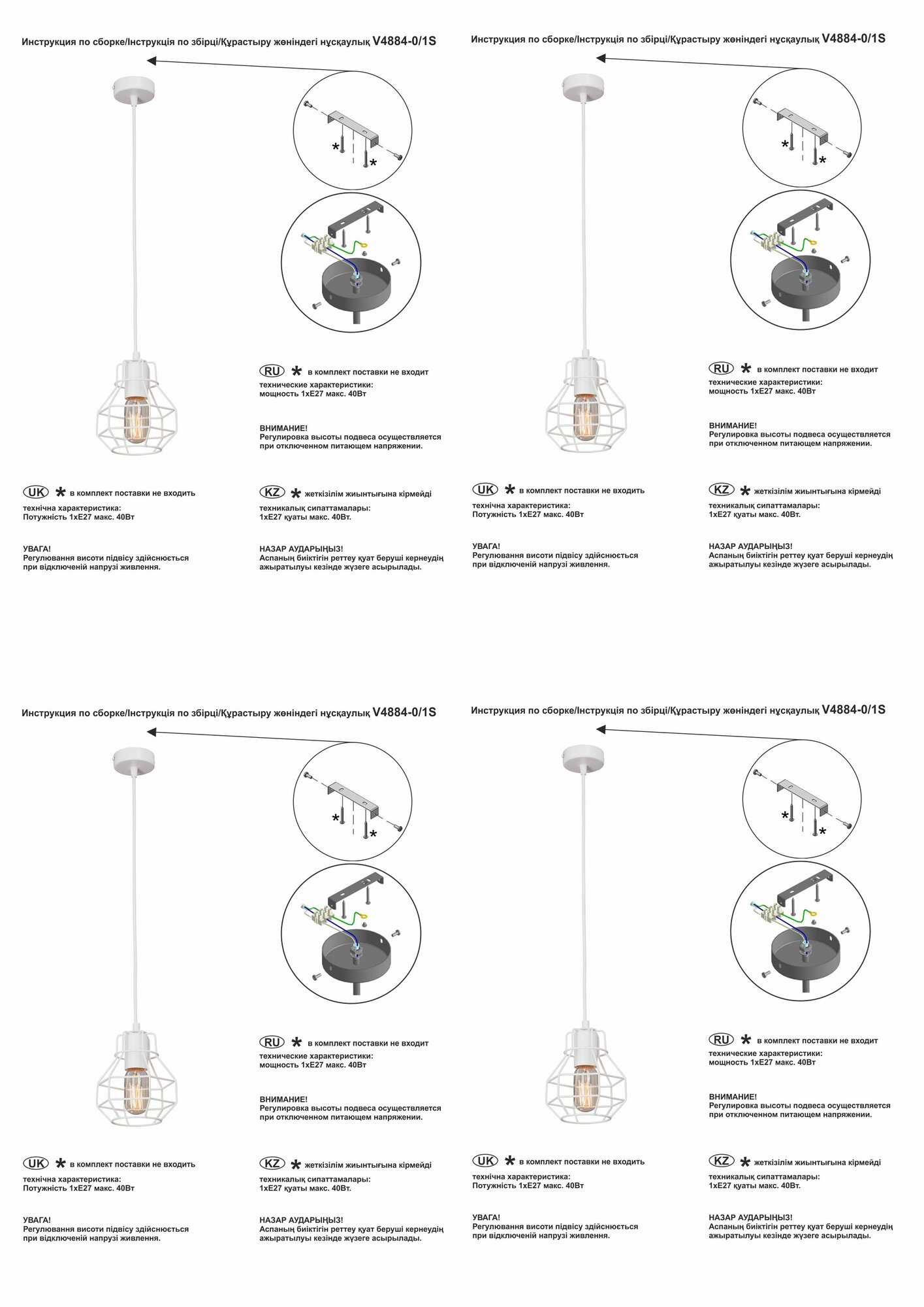 Подвес V4884-0/1S, 1хЕ27 макс. 40Вт