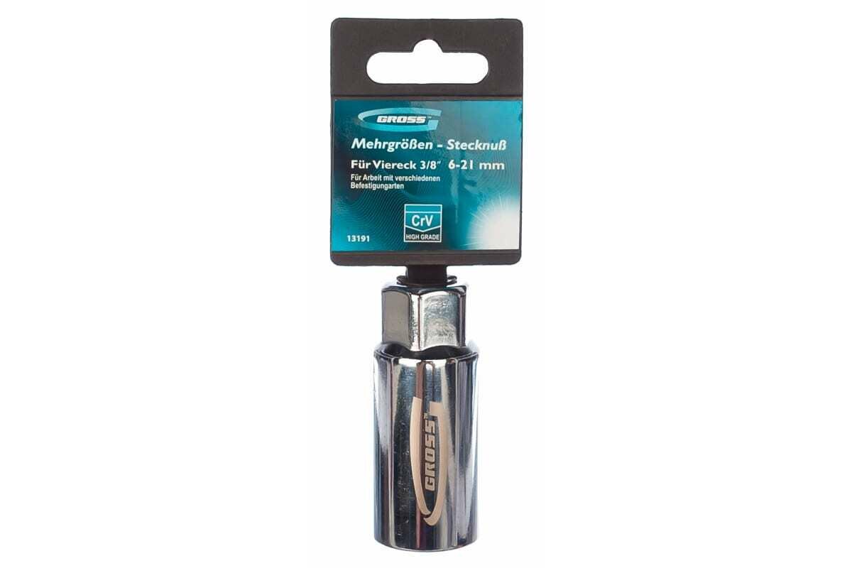 Купить Gross головка торцевая многоразмерная CrV (6-21мм) под квадрат 3/8", CrV, хромир. 13191