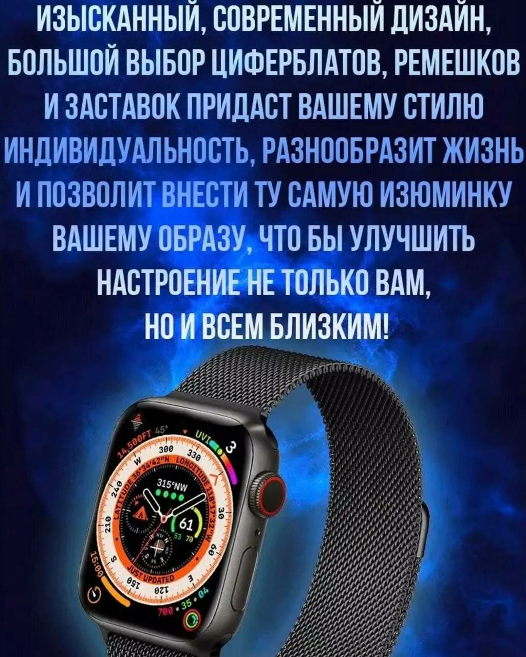 Умные часы Smart Watch 8, смарт часы, фитнес браслет, шагомер, электронные часы, спортивные, унисекс, Bluetooth, 45mm, Чёрные интересное: