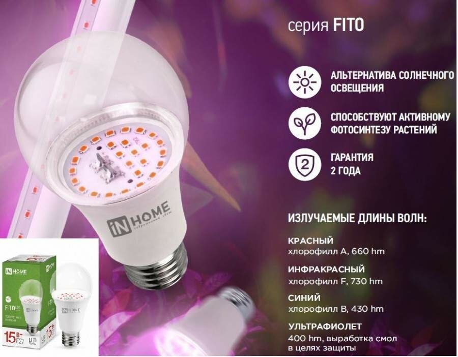 Ниже Вы можете прочитать отзывы на Фитолампа LED-A60-ФИТО IN HOME, 15W, E27, красно-синее свечение, ознакомится с подробными характеристиками, посмотреть интересные обзоры и фотографии на Фитолампа LED-A60-ФИТО IN HOME, 15W, E27, красно-синее свечение.