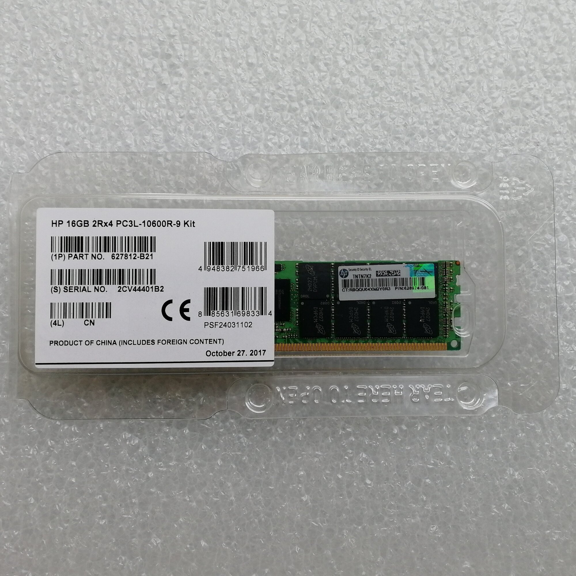 Модуль памяти HP 627812-B21 632204-001 16GB PC3L-10600 DDR3-1333 DUAL RANK MEMORY 628974-081