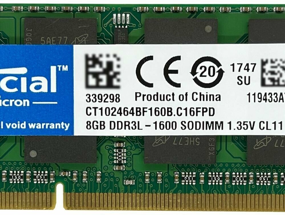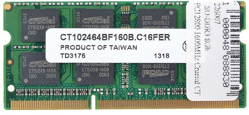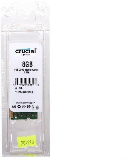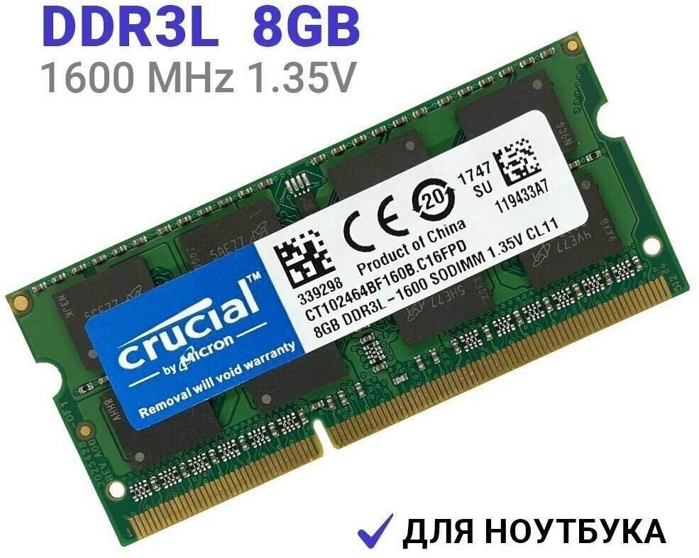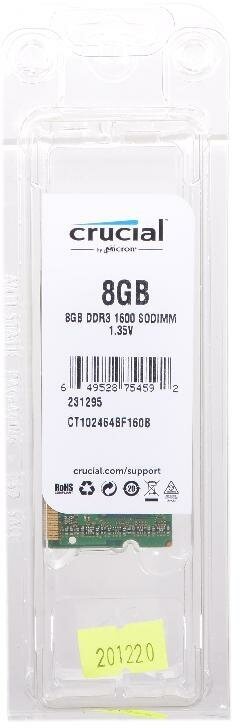 Оперативная память CRUCIAL DDR3L 8 ГБ 1600 MHz SO-DIMM PC3L-12800U 1x8 ГБ (CT102464BF160B.C16FPD) для ноутбука