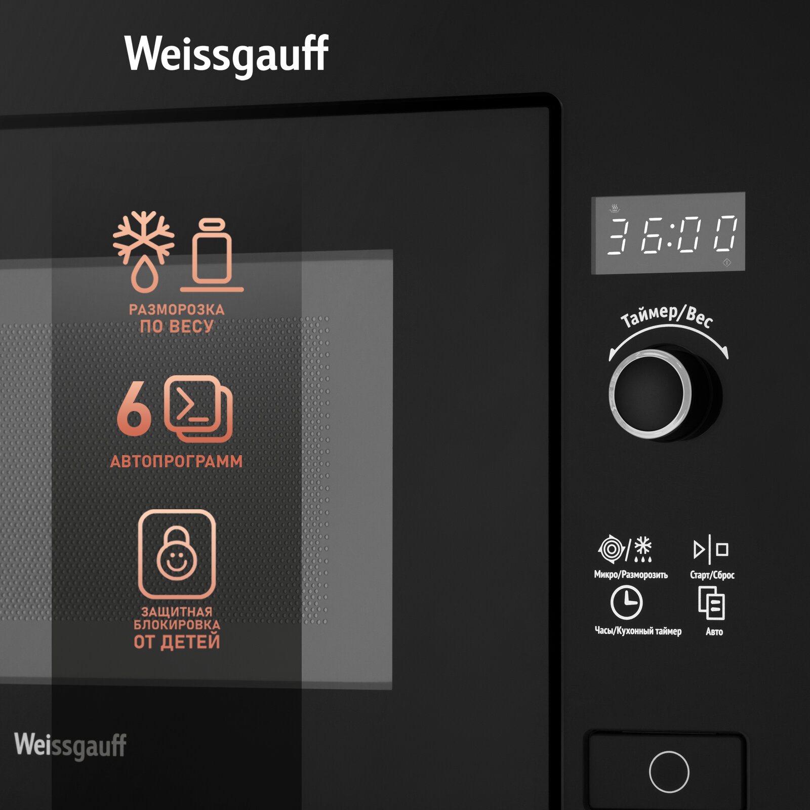 Микроволновая печь встраиваемая Weissgauff HMT-207, черный