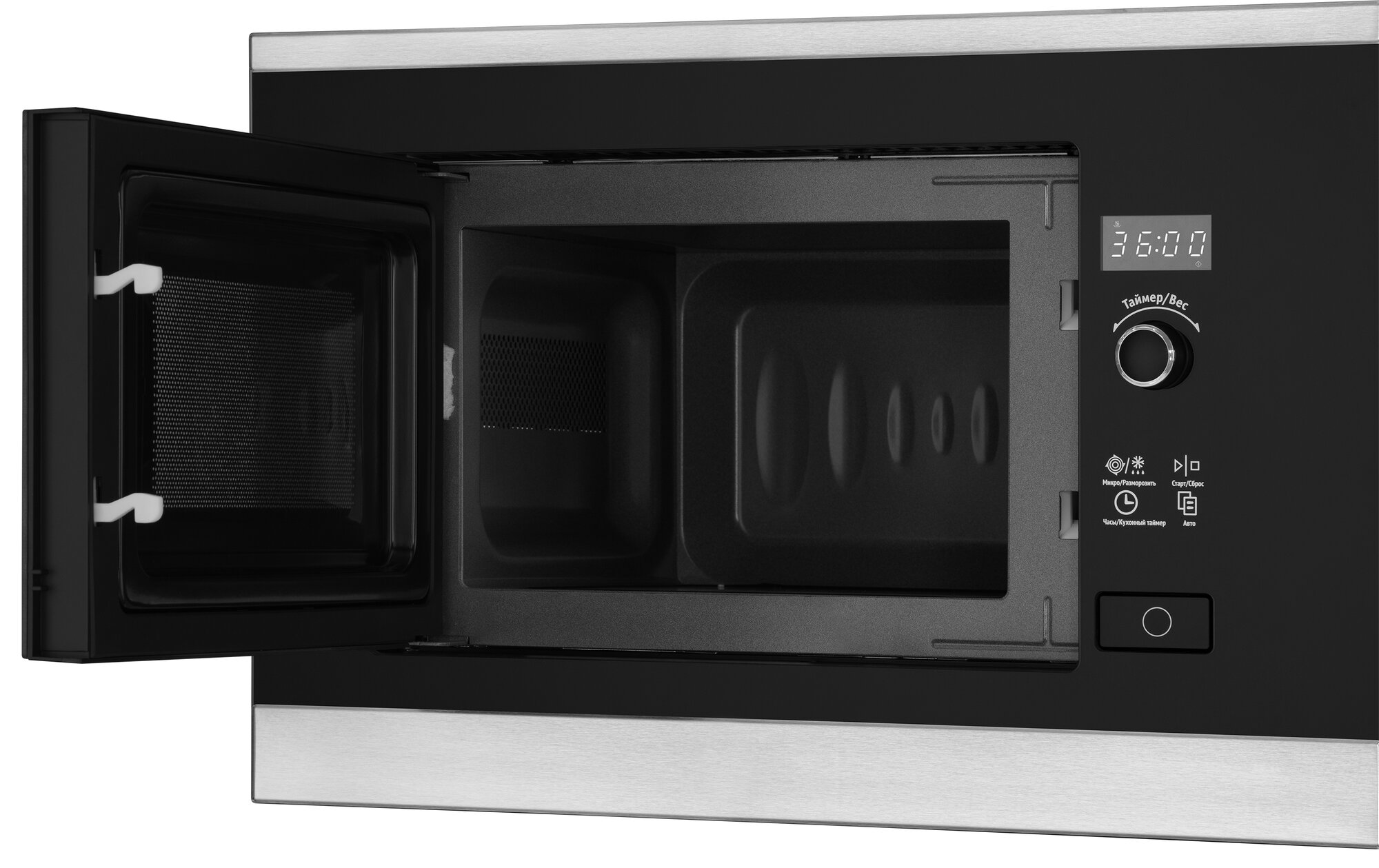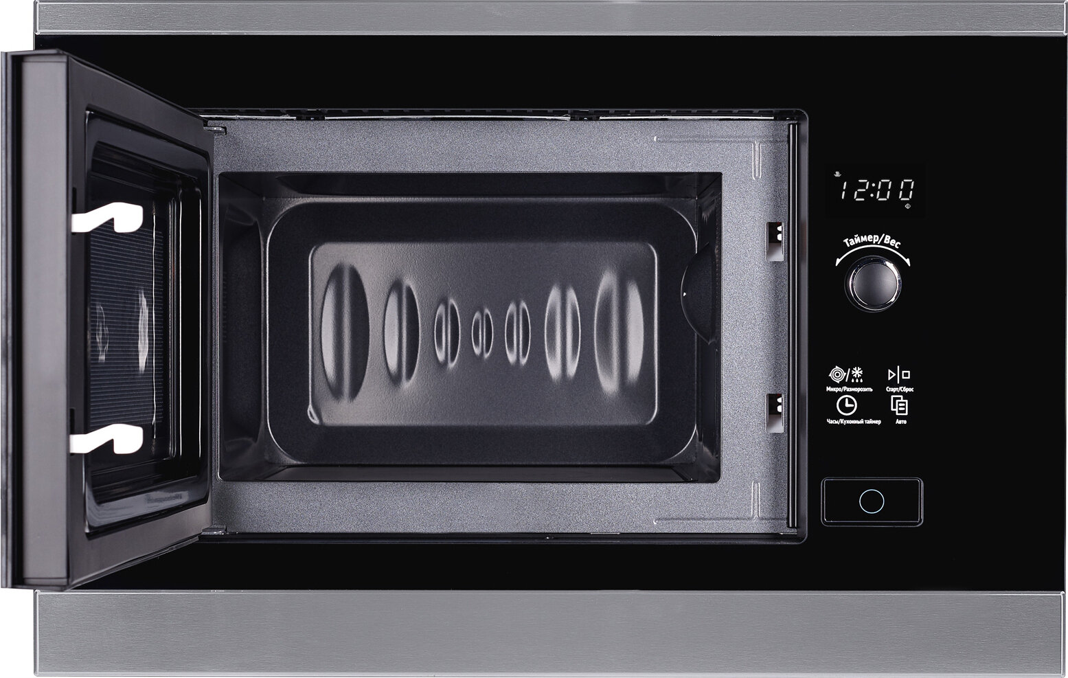 Встраиваемая микроволновая печь без поворотного стола Weissgauff HMT-207 3 года гарантии, Разморозка по весу, Объем 20 литров, Поворотный переключатель Soft Switch