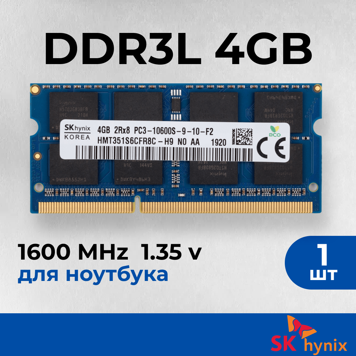 Оперативная память SK Hynix 4 ГБ 1Rx8 DDR3L 1600 МГц SODIMM CL11 HMT451S6AFR8A-PB