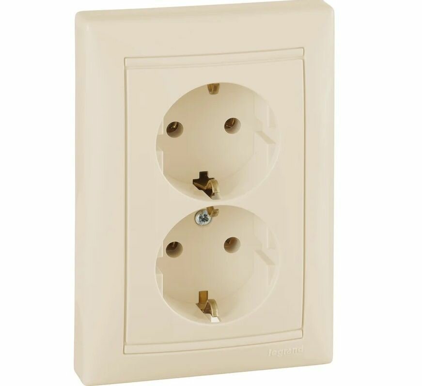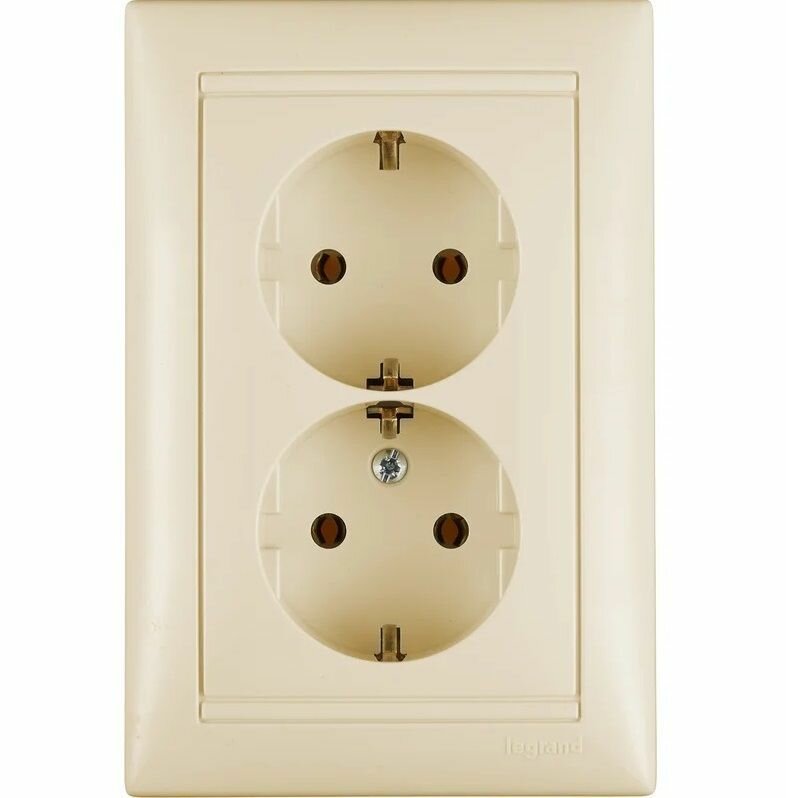 Розетка 2-м СП Valena 16А IP20 2х2P+E с заземл. немецк. стандарт в сборе сл. кость Leg, LEGRAND 774370 (1 шт.)