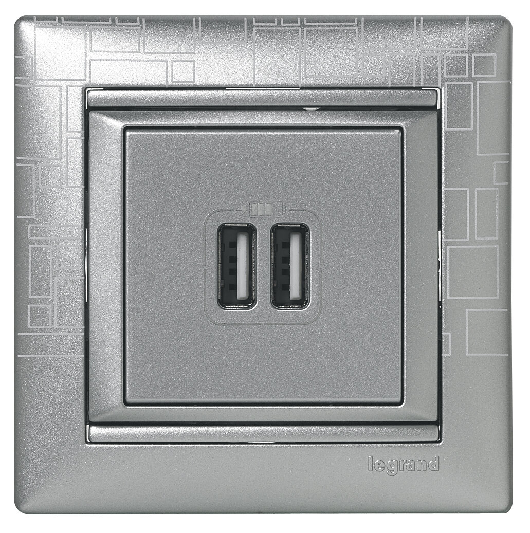 Розетка USB 2-м СП Valena алюм. Leg, LEGRAND 770270 (1 шт.)