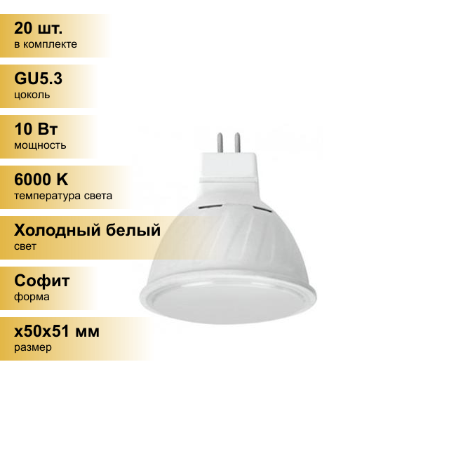 Сохранить(20 шт.) Светодиодная лампочка Ecola MR16 GU5.3 220V 10W 6000K 6K 51x50 матов. Premium M2UD10ELC Холодный белый. Цоколь GU5.3 интересное: