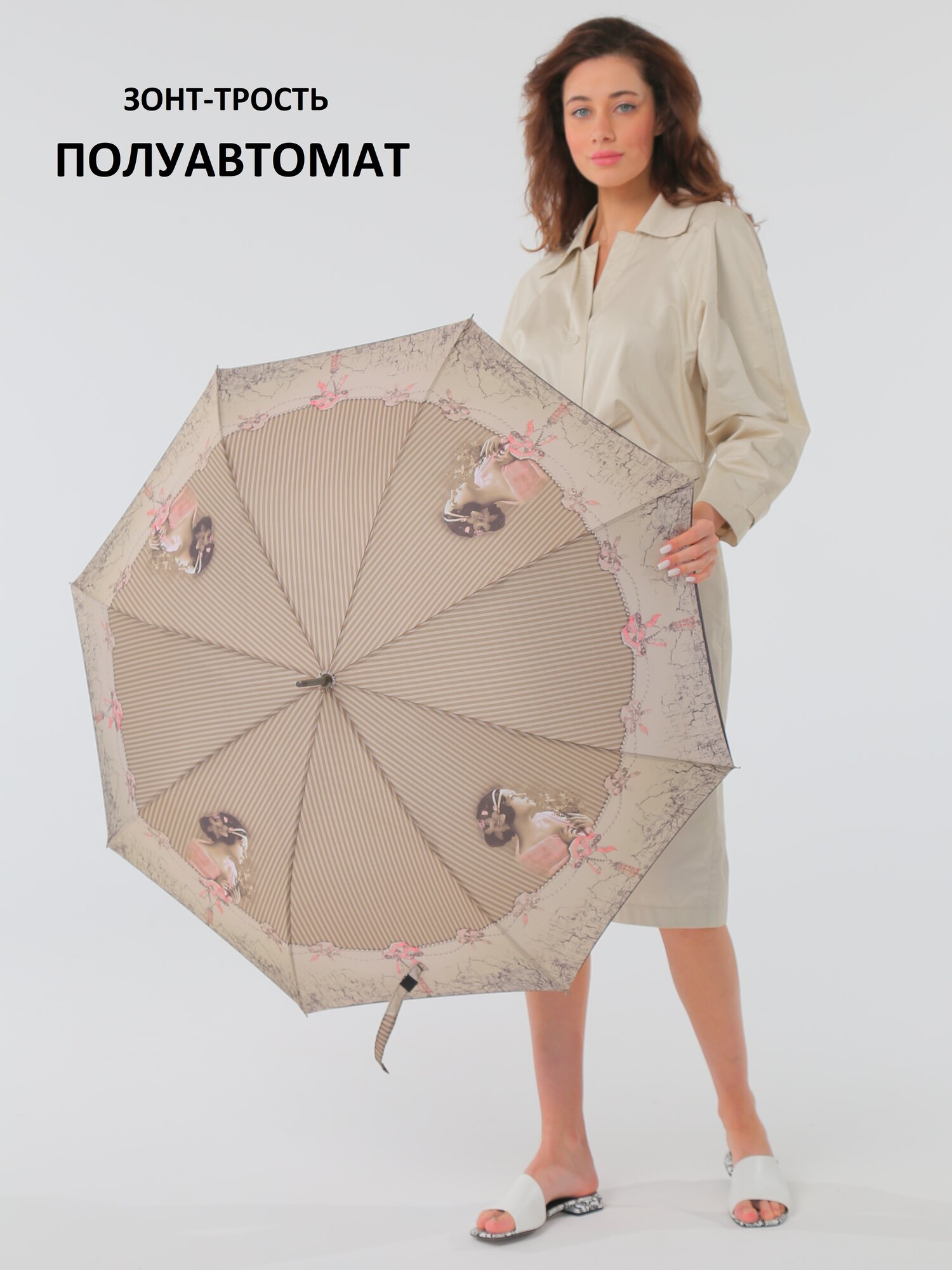Зонт "Три Слона" женский №310-5, купол D=103 см, 10 спиц, суперавтомат бежево-черный