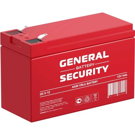 Аккумулятор GS9-12 GENERAL SECURITY (12В 9Ач) для скутеров, ИБП, сигнализаций, GPS оборудования, телекоммуникации, эхолотов