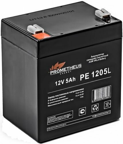 Аккумулятор Prometheus Energy PE 1205L (12V, 5Ah) для ИБП, охранных систем, электромобилей, скутеров, весов, терминалов, аварийного освещения