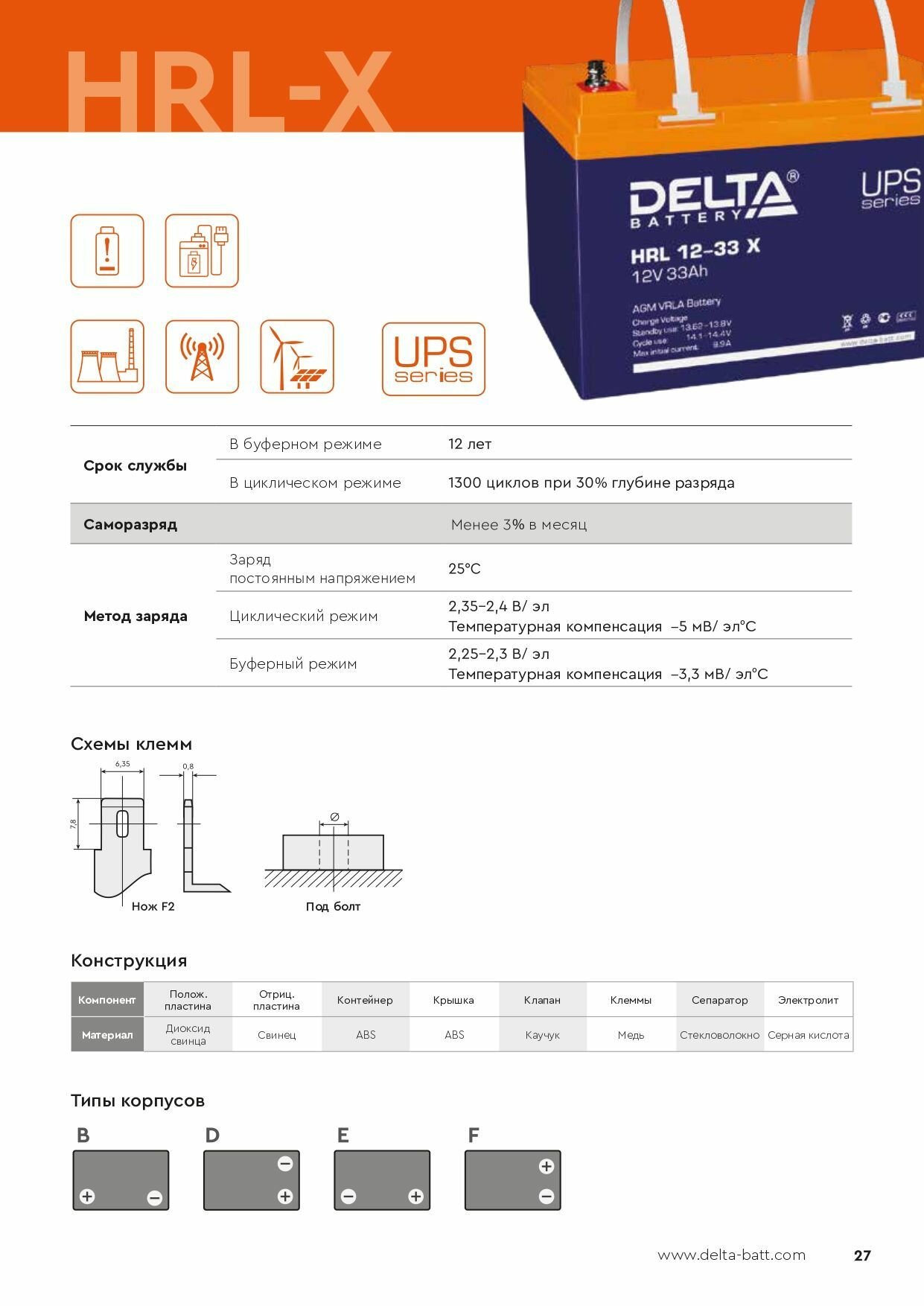 Аккумулятор Delta HRL 12-100 X 12V 100Ah аккумулятор для ИБП, UPS
