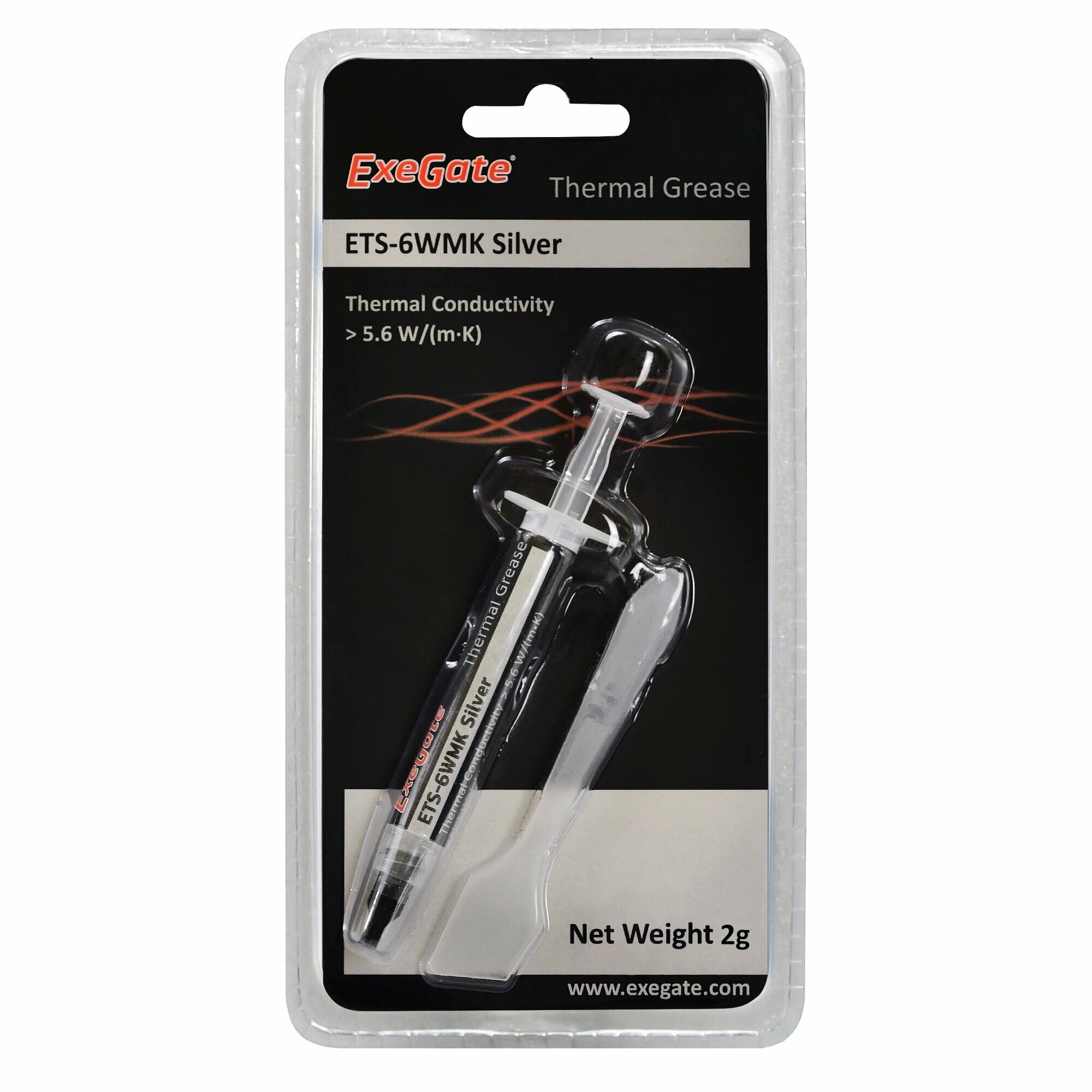 Термопаста ExeGate ETS-6WMK Silver (5,6 Вт/(м•К), 2г, шприц с лопаткой)