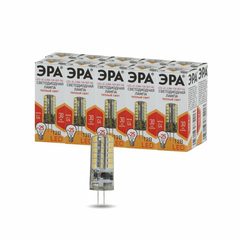 Набор светодиодных лампочек ЭРА LED JC-3,5W-220V-CER-827-G4 2700K Капсула 3,5 Вт 10 штук