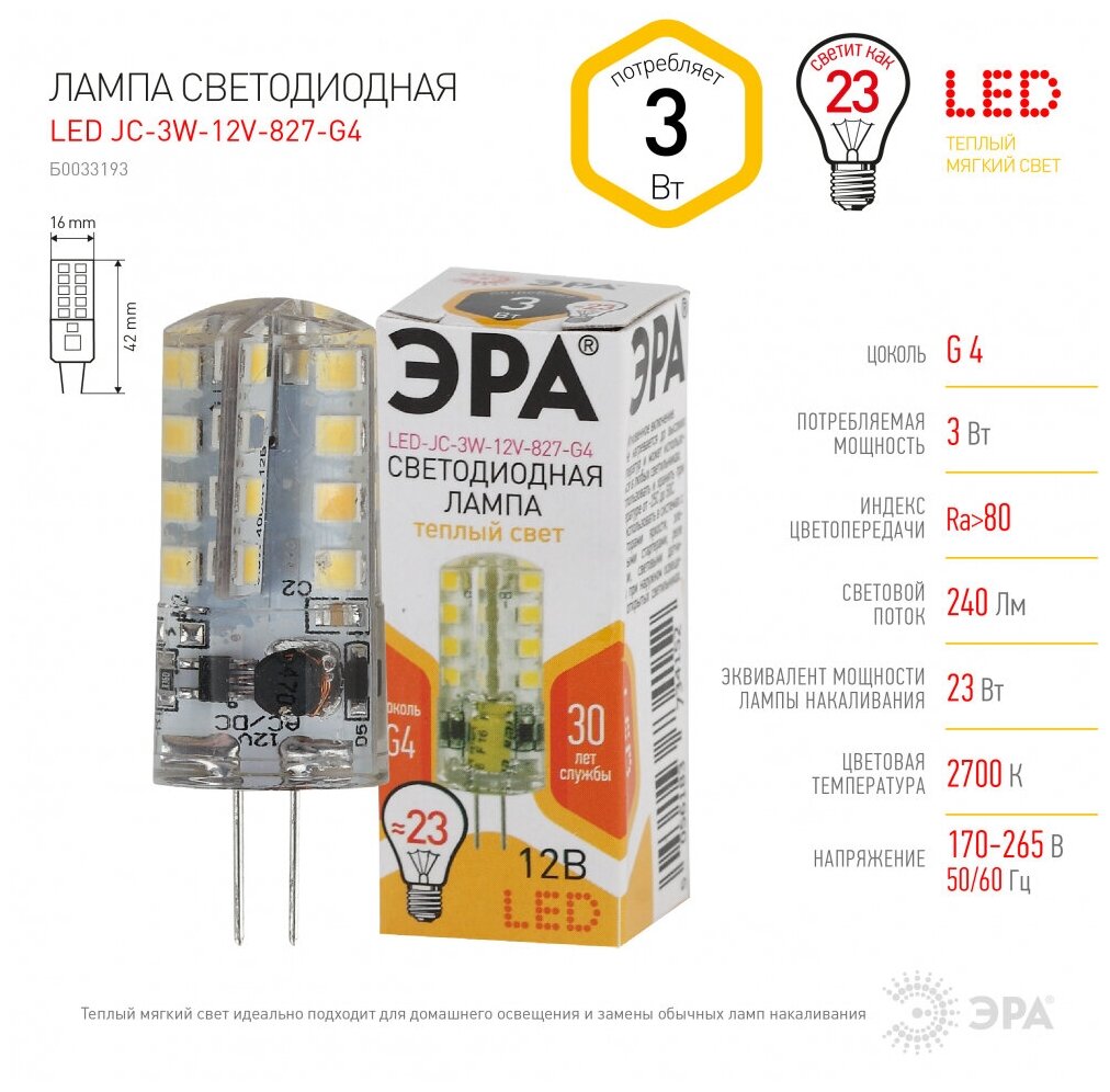 Купить Набор светодиодных лампочек ЭРА LED-JC-3W-12V-827-G4 2700K Капсула 3 Вт 10 штук