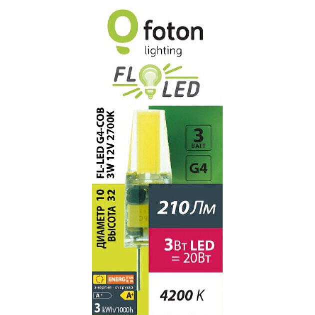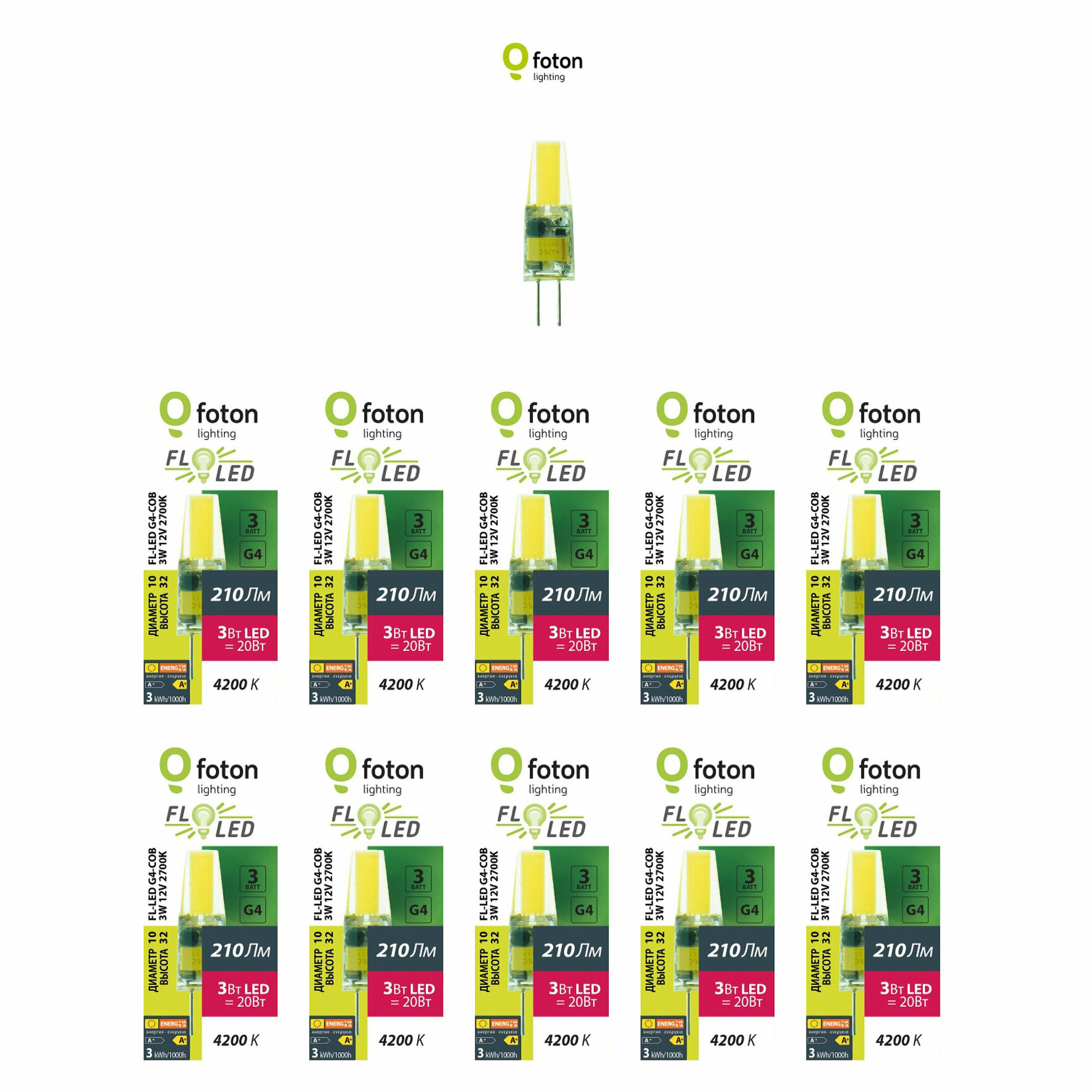 Купить 10шт/уп. Лампа LED Капсула 3Вт 12V G4 PIN 210Лм 4200К Угол 360 град. D-10mm L-32mm Свет Дневной белый Foton Lighting, уп. 10шт