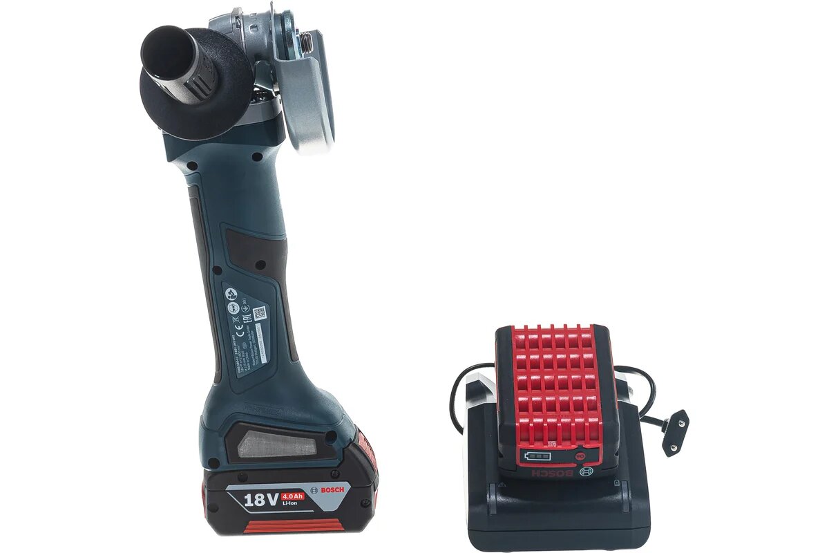 | Комплектация | УШМ, опорный фланец, зажимная гайка, ключ под два отверстия, дополнительная рукоятка, защитный кожух, быстрозарядное устройство, чемоданчик, 2 аккумулятора GBA 18V 4.0Ah |