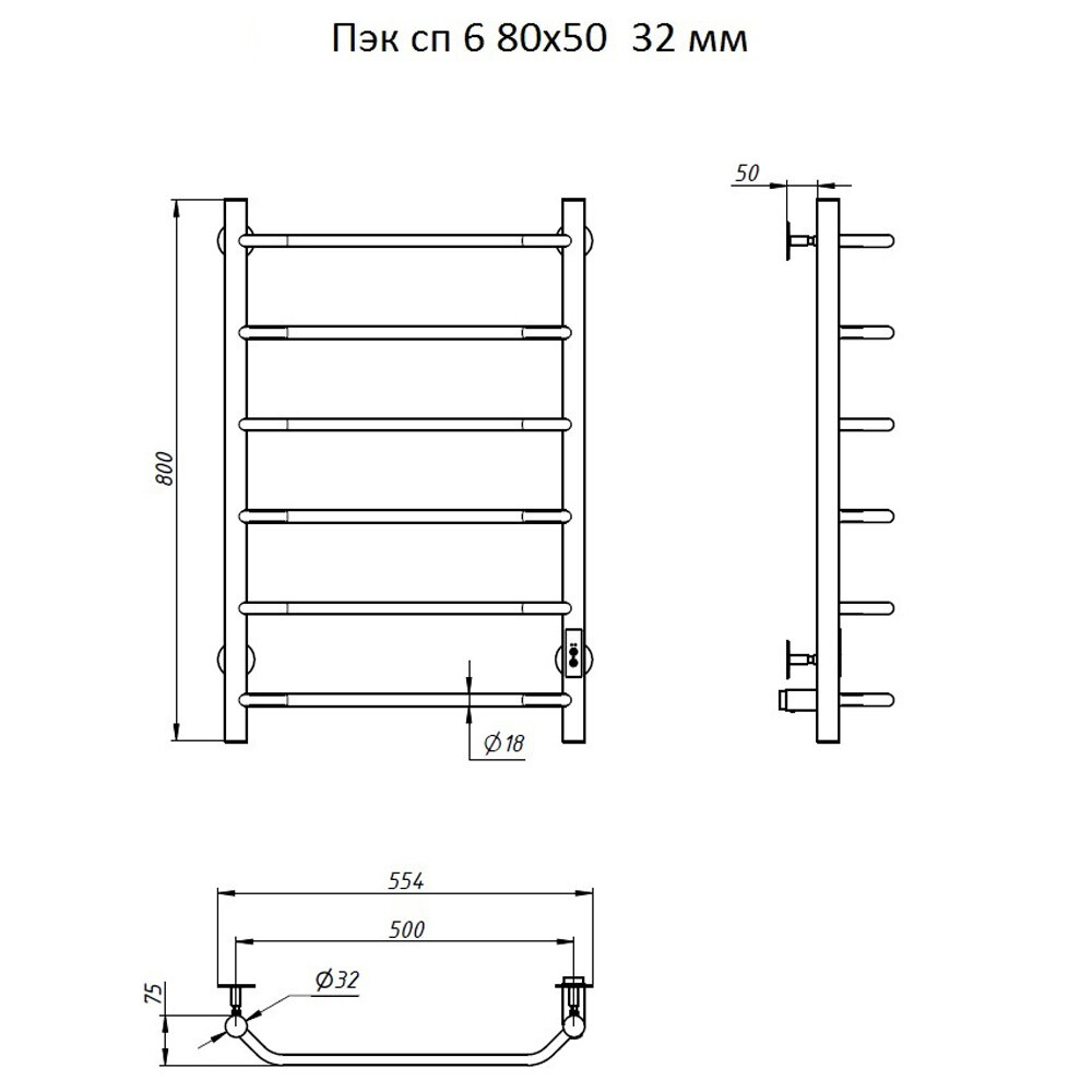 Полотенцесушитель электрический Пэк сп 6 80х50 32 мм (хром)