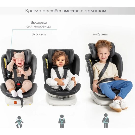 Автокресло детское AMAROBABY CHAMPION, Isofix класс D, группа 0+/1/2/3, (графит)