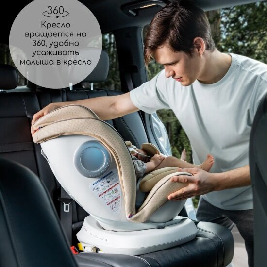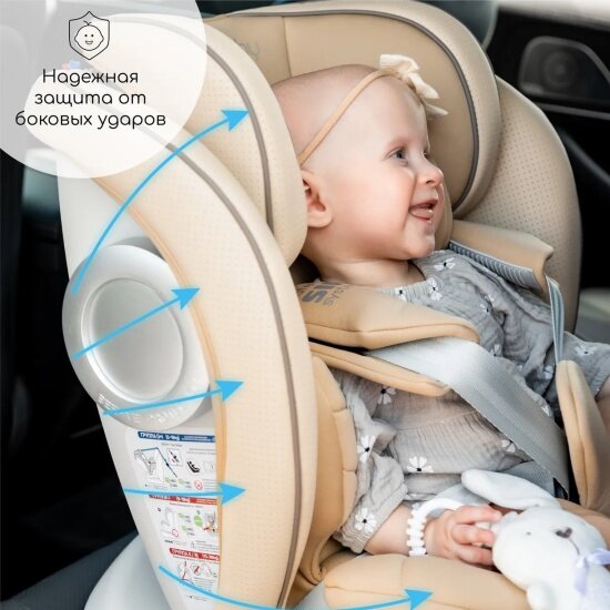 Автокресло детское AMAROBABY CHAMPION, Isofix класс D, группа 0+/1/2/3, (бежевый)