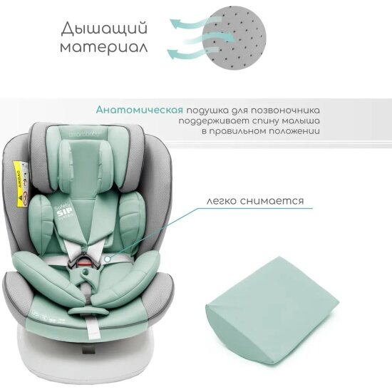 Автокресло детское AMAROBABY CHAMPION, Isofix класс D, группа 0+/1/2/3, (серый/бирюзовый)