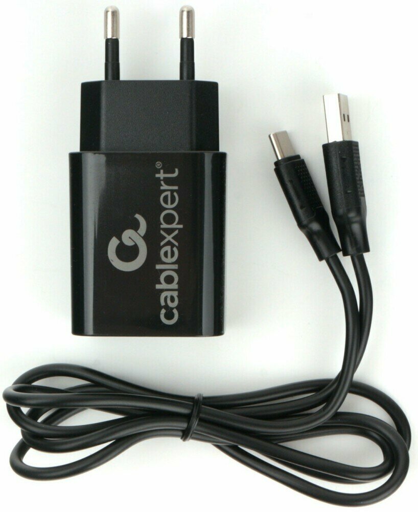 Сетевое зарядное устройство Cablexpert MP3A-PC-37 USB 2 порта, 2.4A, черный + кабель 1м Type-C