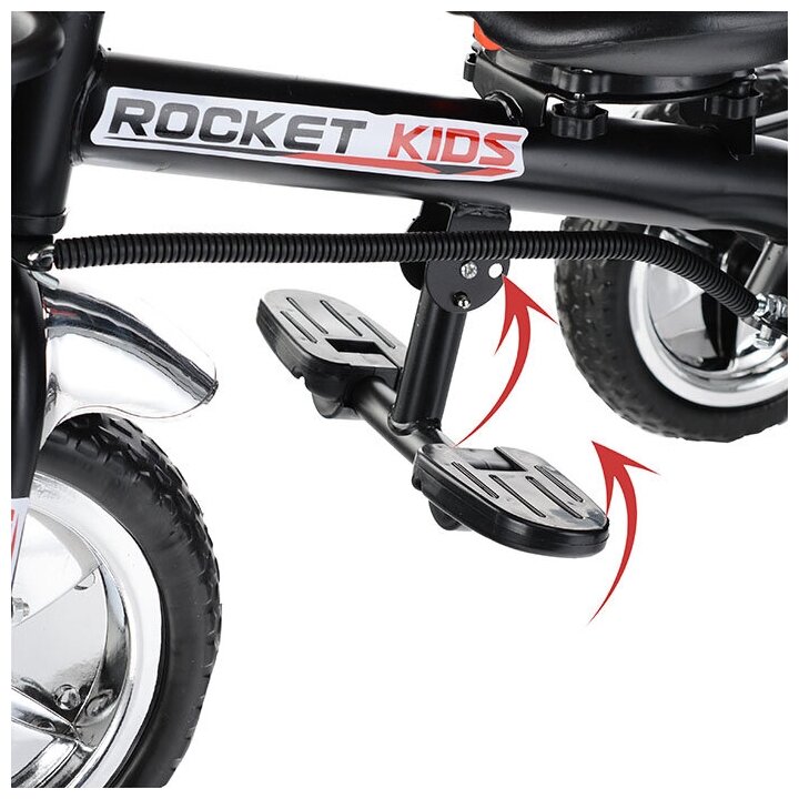 Велосипед детский трёхколесный, с родительской ручкой и козырьком ROCKET 6166FP-3 3-х колесный, серый