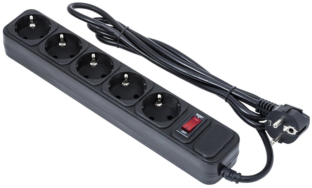Сетевой фильтр ExeGate SP-5-10B 5 евро с заземлением, 10м, выключатель с подсветкой, черный 279181