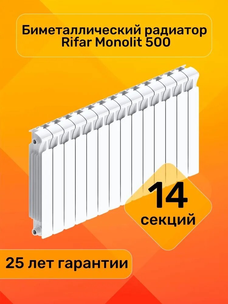 Радиатор биметаллический RIFAR MONOLIT 500 14 секций, цвет белый интересное: