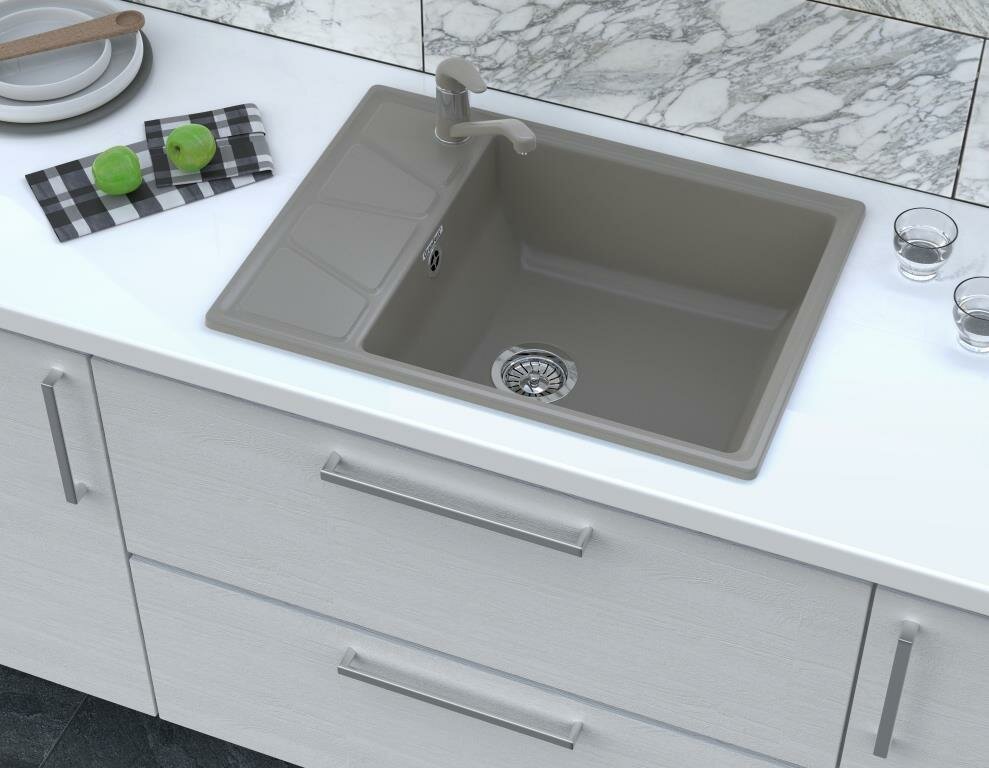 Каменная мойка для кухни врезная GranFest GF-V680L, цвет серый, 680х500х200 мм / раковина для кухни