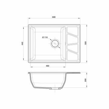 Мойка кухонная GranFest VERTEX GF-V-680L чаш+кр 680*500мм, черный, мрамор