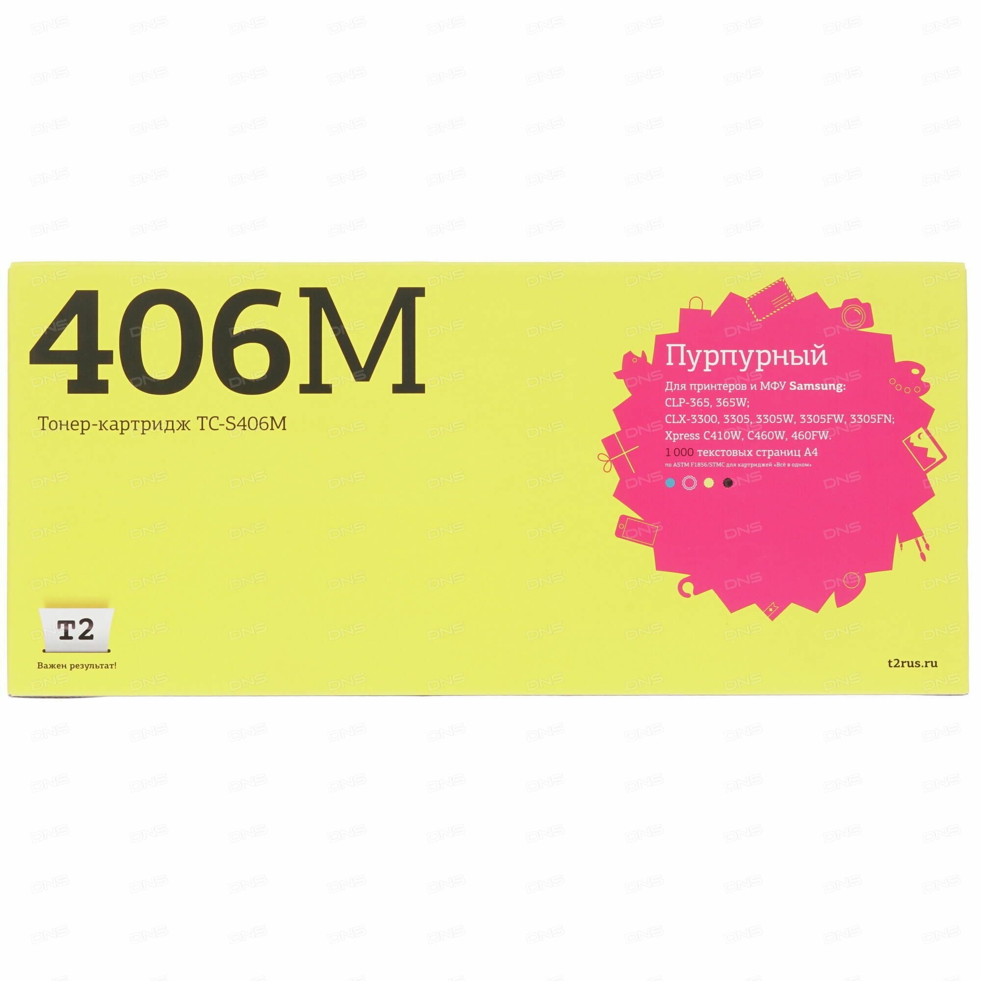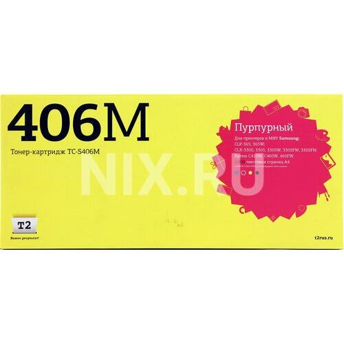 T2 Расходные материалы CLT-M406S Картридж TC-S406M для Samsung CLP-365 CLX-3300 3305 Xpress C410 1000 стр. пурпурный, с чипом