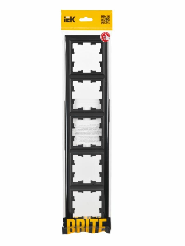 Рамка электроустановочная IEK / ИЭК РУ-5-БрЧ Brite, BR-M52-K02, черный, 5 постов / для розеток и выключателей